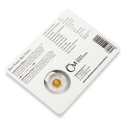 Zlatá mince o hmotnosti jedné poloviny gramu je zasazena do speciálního česko-anglického balení. Poslouží jako dostupný dárek i originální přírůstek do sbírky a stane se talismanem pro štěstí.