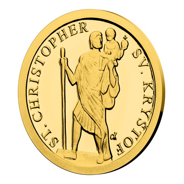 Svatý Kryštof je patronem všech poutníků – cestujících, motoristů, letců, námořníků, …  –, ochráncem před náhlou smrtí a pomocníkem v nouzi. Je mu věnována čtvrtá zlatá minimince České mincovny z cyklu Patroni.