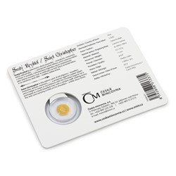 Zlatá mince je zasazena do speciálního česko-anglického balení. Celek poslouží jako talisman pro štěstí, dostupný dárek i originální přírůstek do sbírky.