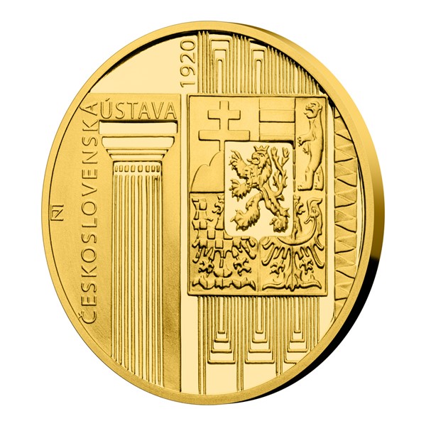 Akademický sochař Zbyněk Fojtů vnímá ústavu jako pilíř demokracie. V levé části reverzní strany mince se proto nachází sloup budovy Ústavního soudu obklopený nápisem ČESKOSLOVENSKÁ ÚSTAVA 1920. Pravá část reverzní strany předkládá trikolóru a velký státní znak Československa obklopený okrasným vzorem. Geometrická dekorace nebyla zvolena náhodou – vychází z vazby slavnostního provedení československé ústavy, které vzniklo roku 1932. Mince České mincovny vycházejí v licenci zahraničního vydavatele, kterým je ostrov Niue, a jejich averzní strana proto nese jeho nezbytné náležitosti – jméno a profil královny Alžběty II., nominální hodnotu 10 DOLLARS (NZD) a rok vydání 2020. Kompozici averzu dotvářejí lipové ratolesti a trikolóra, která prostupuje celou minisérií…