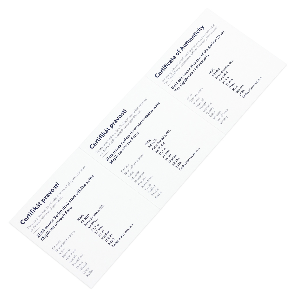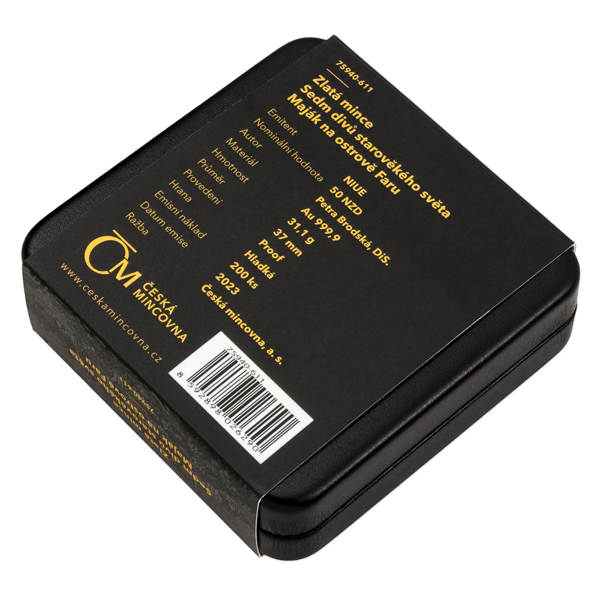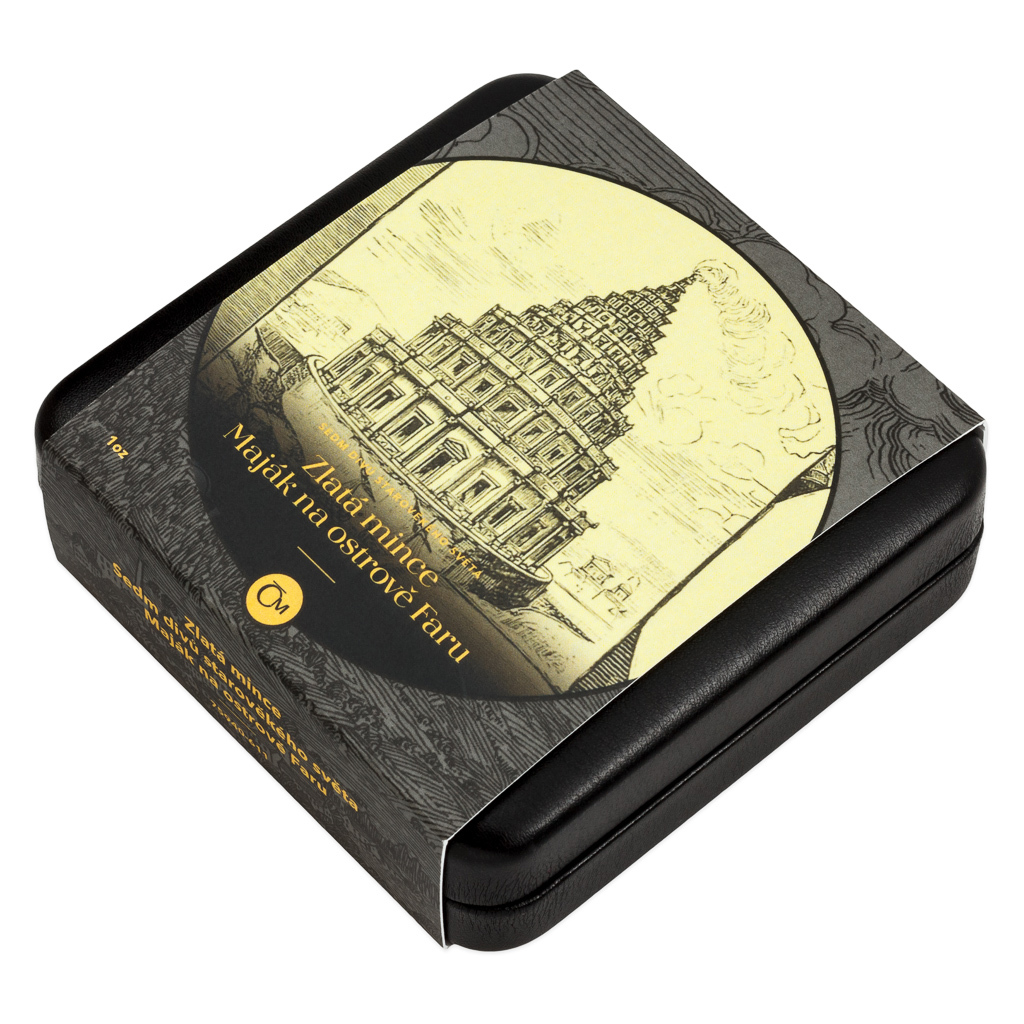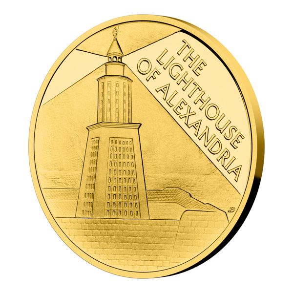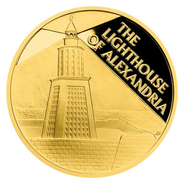 Posledním ze sedmi divů starověkého světa je maják na ostrově Faru. Legendární památku připomíná zlatá mince České mincovny o hmotnosti jedné trojské unce.