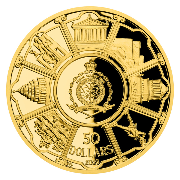 Reverzní strana mince, která je dílem medailérky Petry Brodské, DiS., předkládá domnělou podobu majáku na ostrově Faru doplněnou anglickým opisem THE LIGHTHOUSE OF ALEXANDRIA. Averzní strana, která je společná celému cyklu, pak předkládá všech sedm divů světa – egyptské pyramidy, visuté zahrady Semiramidiny, Artemidin chrám v Efesu, Feidiovu sochu Dia v Olympii, mauzoleum v Halikarnassu, Rhodský kolos a maják na ostrově Faru. Protože mince České mincovny vycházejí v zahraniční licenci ostrova Niue, nesou na averzní straně ještě jeho státní znak, nominální hodnotu 50 DOLLARS (NZD) a rok emise 2023.