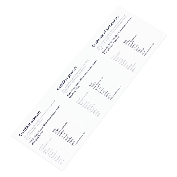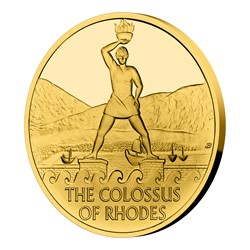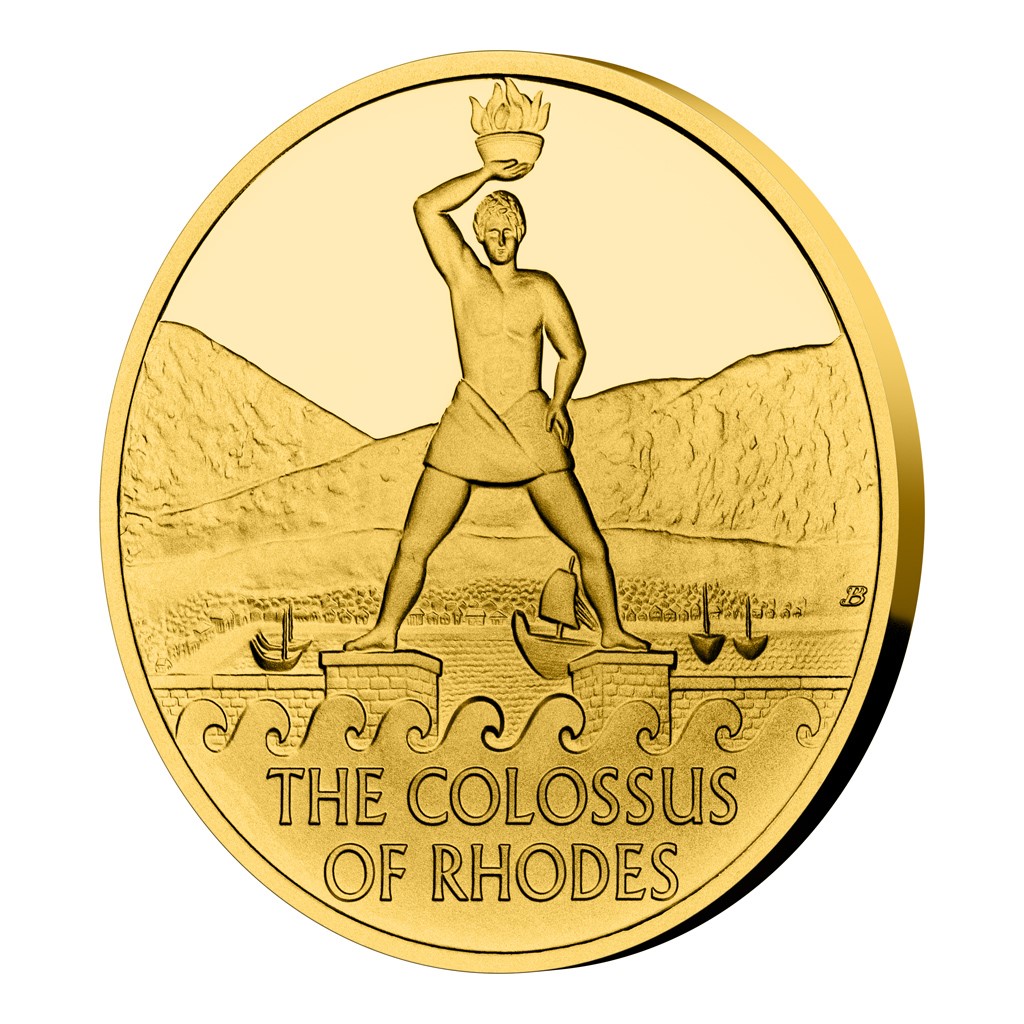 Šestým ze sedmi divů starověkého světa je Rhodský kolos. Legendární památku připomíná zlatá mince České mincovny o hmotnosti jedné trojské unce.