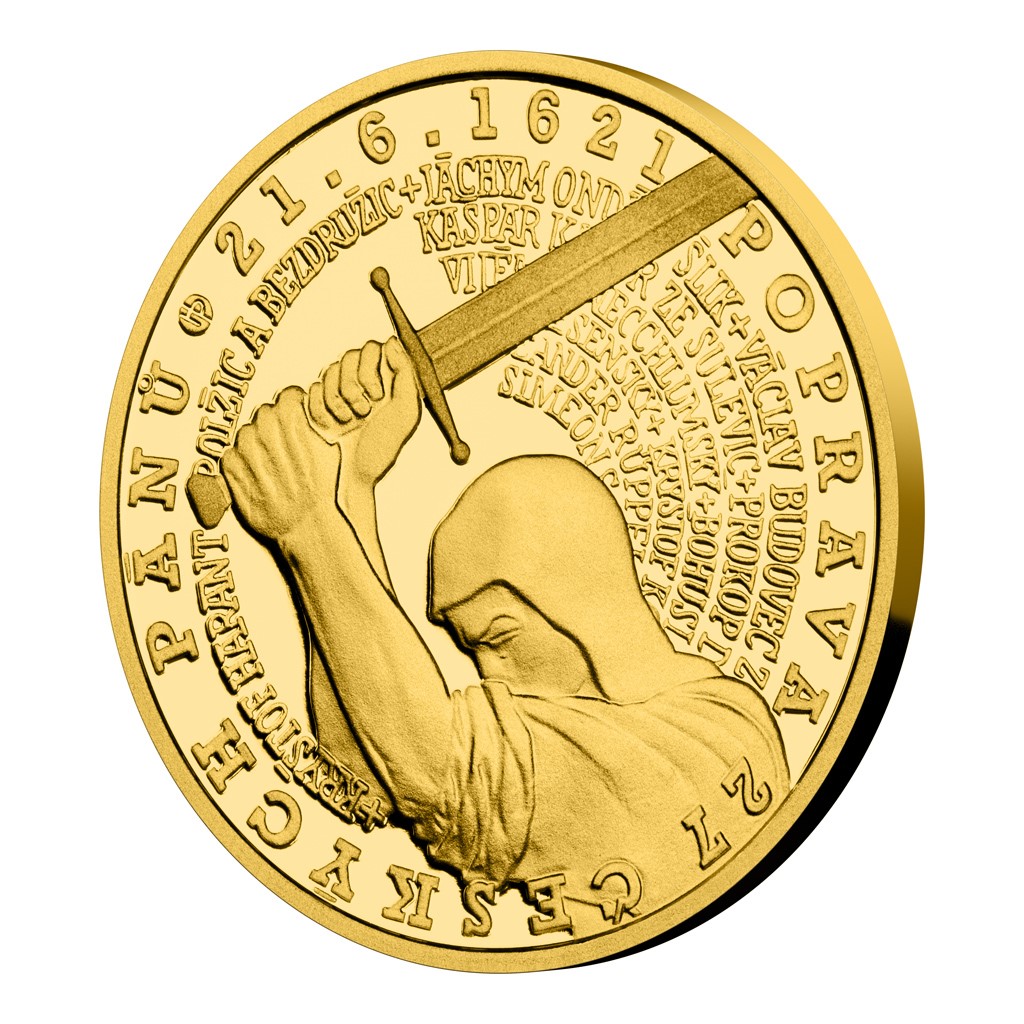Třetí zlatá mince České mincovny z minisérie s názvem Staroměstská exekuce je věnována českým pánům, kteří před 400 lety vydechli naposledy.