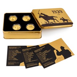 Kompletní sbírku čtyř válečných mincí si můžete uložit do tematické plechové etue, kterou rovněž najdete v nabídce České mincovny.