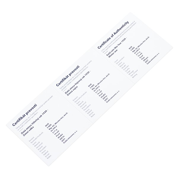Zlatá mince Válečný rok 1939 - Zimní válka proof