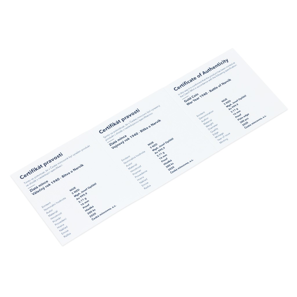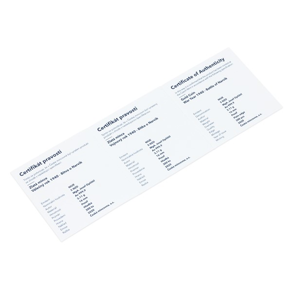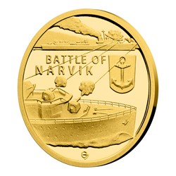 V roce 1940 vypadala situace na bojištích druhé světové války beznadějně. Nacistická vojska se beztrestně valila Evropou a vítězila v každé bitvě. Jejich první porážku, kterou jim uštědřili Spojenci v bitvě o Narvik, připomíná první zlatá mince České mincovny ze čtyřdílné minisérie Válečný rok 1940.