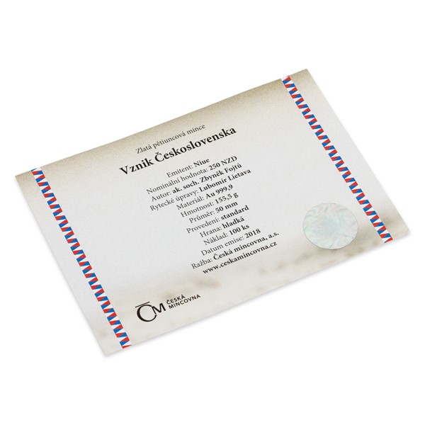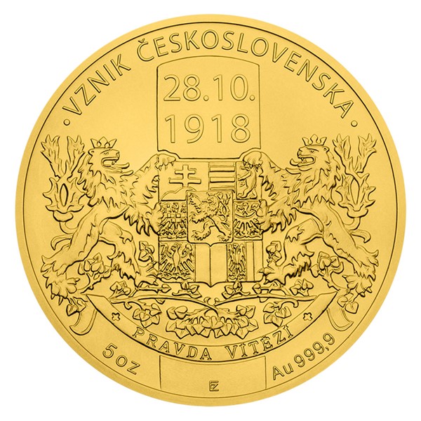V roce 2018 vychází celá řada sběratelských ražeb věnovaných 100. výročí vzniku Československa. Vysokohmotnostní mince České mincovny, která je vyražená z pěti trojských uncí ryzího zlata osvobozených od DPH, však zaujme především investory.