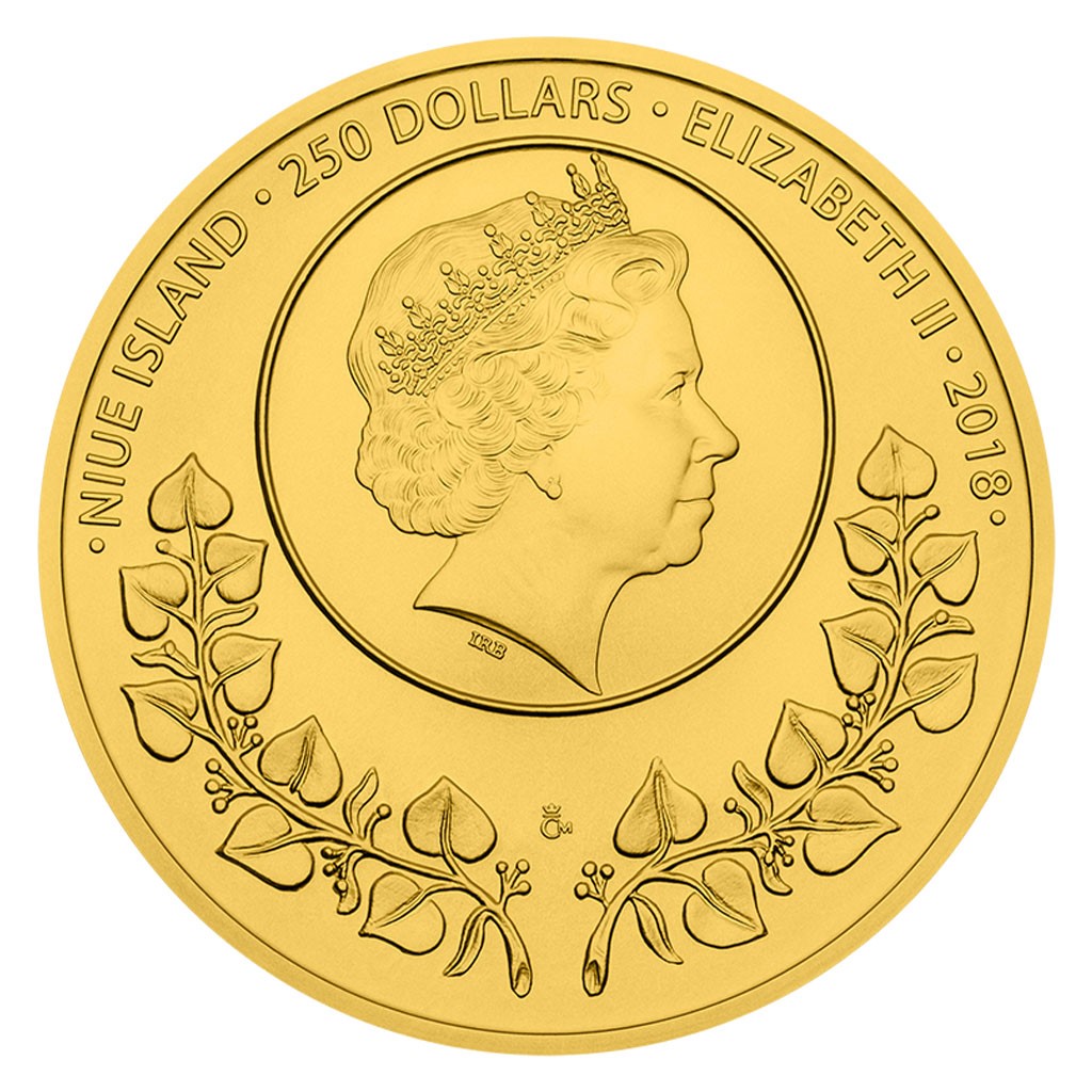 Reverzní straně mince, která je dílem akademického sochaře Zbyňka Fojtů, vévodí takzvaný „veliký znak republiky Československé“. Dva štítonoši v podobě dvouocasých lvů nesou znaky Čech, Slovenska, Podkarpatské Rusi, Moravy, Slezska, Těšínska, Opavska a Ratibořska. Doplňují je lipové ratolesti a stuha s národním heslem PRAVDA VÍTĚZÍ. Kompozici reverzu dotváří ještě opis VZNIK ČESKOSLOVENSKA s datem 28. 10. 2018. Averzní strana mince je pak věnována lipovým ratolestem a nezbytným náležitostem ostrova Niue, který poskytuje zahraniční licenci k vydávání mincí České mincovny. Jsou jimi jméno a portrét královny Alžběty II., rok emise 2018 a nominální hodnota 250 DOLLARS (NZD).