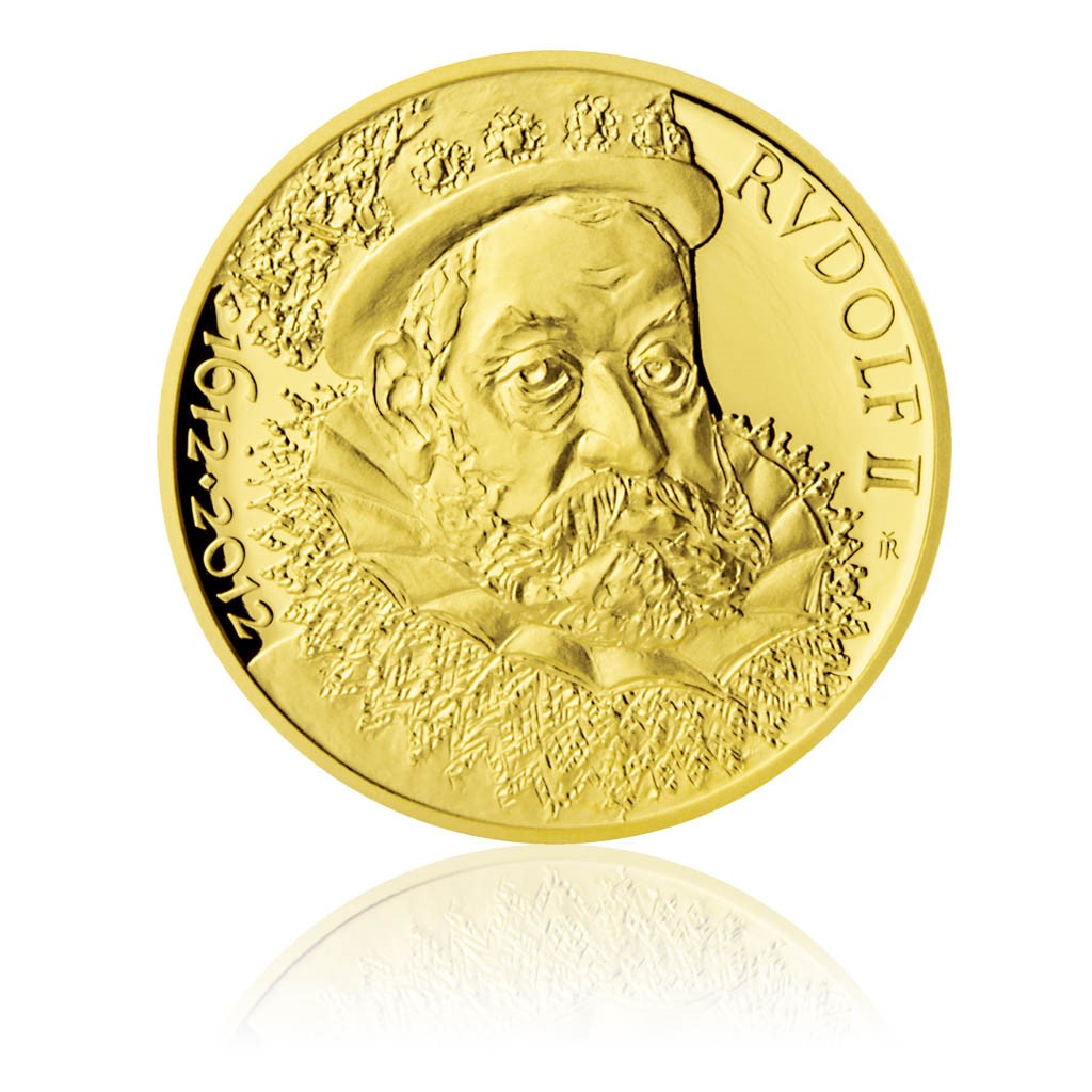 Během panování Rudolfa II. Habsburského (18. 7. 1552) se Praha stala centrem evropské politiky a významným střediskem vědeckého a uměleckého života. Byl bezpochyby jedním z nejvýznamnějších evropských panovníků, jehož doba a osobnost je dodnes opředena mnohými záhadami, nejasnostmi a legendami. Rudolf II., velkorysý mecenáš věd a umění, ale i černé magie, hledač univerzálních pravd o životě a světě, zemřel 20. ledna 1612. Pamětní medaile je připomínkou 400. výročí jeho úmrtí. Na averzní straně je vypodobněn vladař v dobovém pozdně renesančním oděvu. Portrét je doplněn opisem s jeho jménem a letopočty úmrtí (1612) a 400. výročí (2012). Reverzní strana zobrazuje heraldická znamení Svaté říše římské a Království českého. Ztvárnění obou zvířat v pohybu zároveň odkazuje na tradiční pojetí symboliky orla jako krále vzduchu a lva jako krále na zemi. Kompozice je doplněna osobním monogramem panovníka a v opise jeho devisou "F (FULGET):C (CAESARIS):ASTRUM" v překladu "Nechť září hvězda císařova". Limitovaný náklad 200 kusů, číslováno.