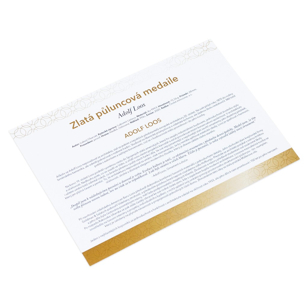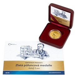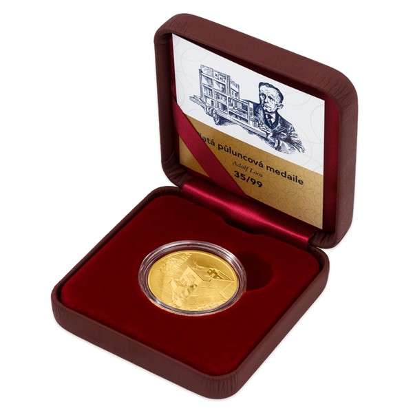 Dílo Adolfa Loose – jednoho z nejhlasitějších bojovníků za jednoduchost a funkčnost v architektuře – k nám promlouvá i 150 let po jeho narození. Důkazem je půluncová zlatá medaile České mincovny, která je součástí volného cyklu nejkrásnějších nerealizovaných návrhů přihlášených do soutěží České národní banky.