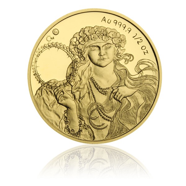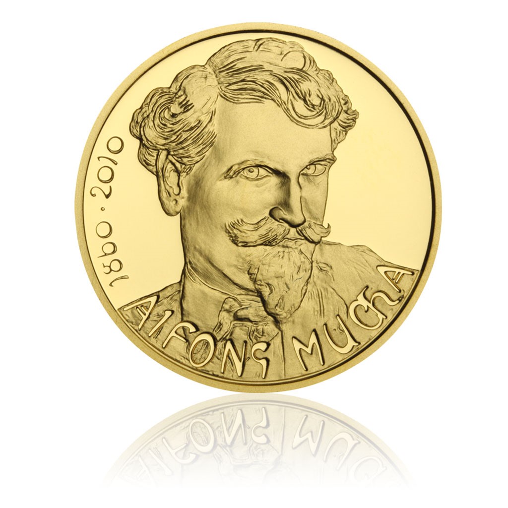 Zlatá půluncová medaile Alfons Mucha proof