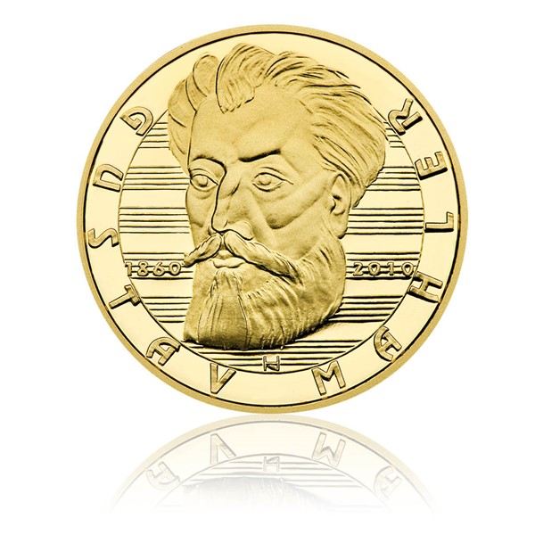 Hudební skladatel Gustav Mahler (1860) se narodil v židovské rodině v obci Kaliště na Vysočině. Již od dětství projevoval výjimečný hudební talent a stal se rovněž vynikajícím dirigentem. On i jeho učitel Anton Bruckner jsou považováni za největší rakouské symfoniky. Přesto, že se Gustav Mahler narodil v tehdejším Rakouském císařství, lze jej do určité míry považovat také za českého skladatele. Nejen že se v Čechách narodil, ale v jeho díle se výrazně odráží inspirace českou lidovou hudbou. Tento slavný dirigent za svůj život složil deset symfonií. Vídeňská opera pod jeho vedením prožívala v letech 1898–1907 dobu největšího rozkvětu. Od roku 1908 byl kapelníkem Metropolitní opery v New Yorku a v roce 1909 též hudebním vedoucím newyorské Philharmonic Society. Averzní strana zobrazuje mladého skladatele v pozadí s notovou osnovou. Reverzní stranu medaile tvoří trojice stylizovaných heraldických zvířat České republiky, v opisu pak tři nejvýznamnější města, kde Mahler působil – Praha, Vídeň a New York. Limitovaná emise 600 kusů, číslovaná na hraně