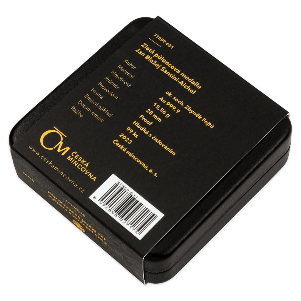 Zlatá půluncová medaile Jan Blažej Santini-Aichel proof