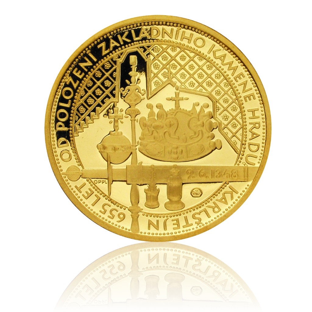 Zlatá půluncová medaile Karlštějn - 655 let od založení proof čís