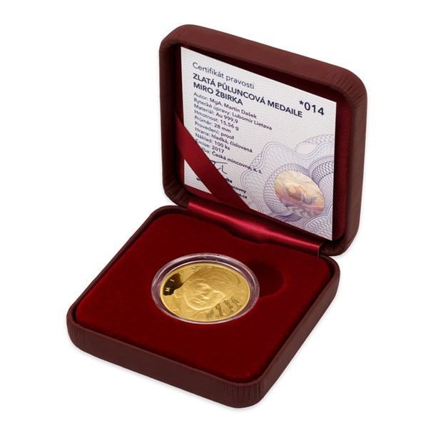 Zlatá půluncová medaile Miro Žbirka proof číslováno