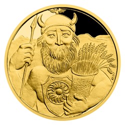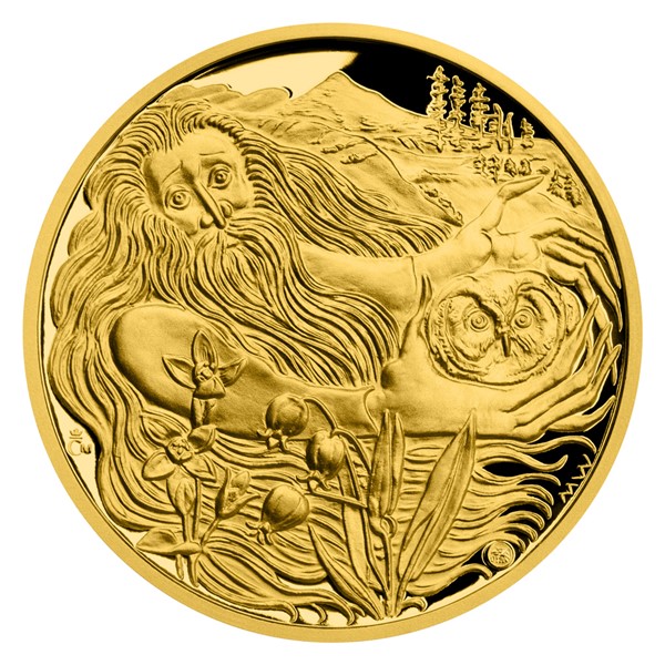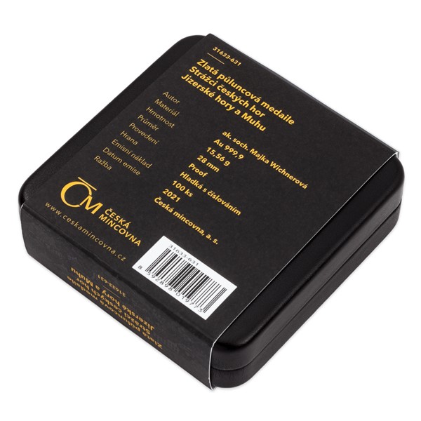 Podle lidových pověstí se o naše pohoří starají nadpřirození ochránci. K lidem, kteří se k horám chovají s úctou, jsou tito duchové laskaví a velkorysí, ale jakmile horské přírodě někdo ublíží, se zlou se potáže… První takovou bytostí, kterou představuje zlatá medaile z cyklu Strážci českých hor, je Muhu. Ten je vládcem Jizerských hor, které jsou domovem České mincovny.