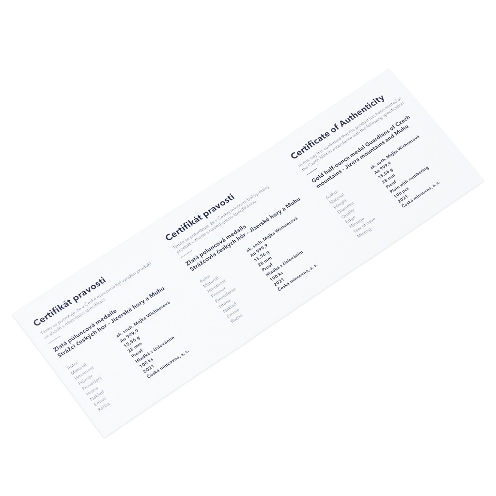 Zlatá půluncová medaile Strážci českých hor - Jizerské hory a Muhu proof