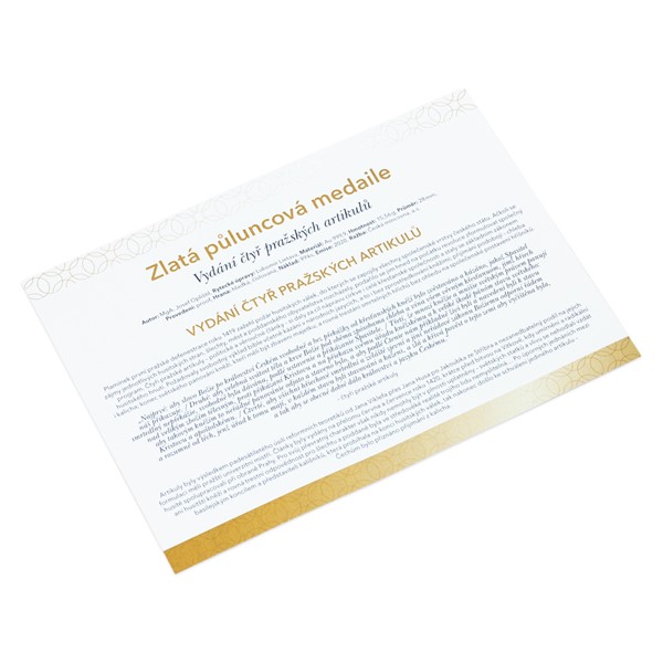 Zlatá půluncová medaile Vydání čtyř pražských artikulů proof