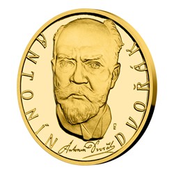 Zlatá půluncová mince Antonín Dvořák proof