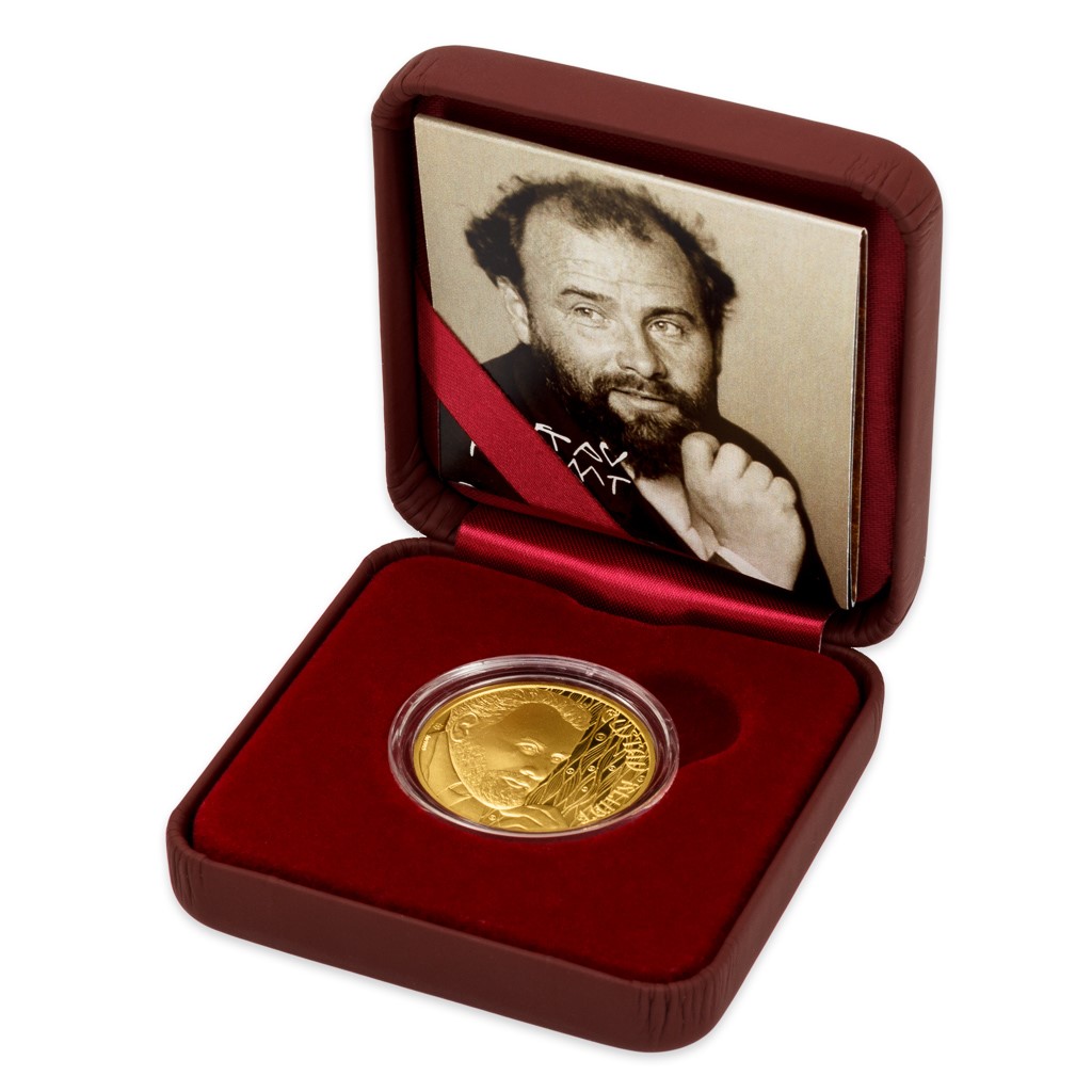 Nedílnou součástí každé mince je výpravný certifikát pravosti, který připomíná osobnost Gustava Klimta i jeho nejznámější díla.