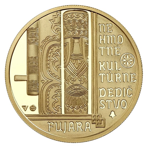 Zlatá mince s nominální hodnotou 100 euro připomíná slovenské kulturní dědictví zastoupené ikonickým hudebním nástrojem – fujarou.