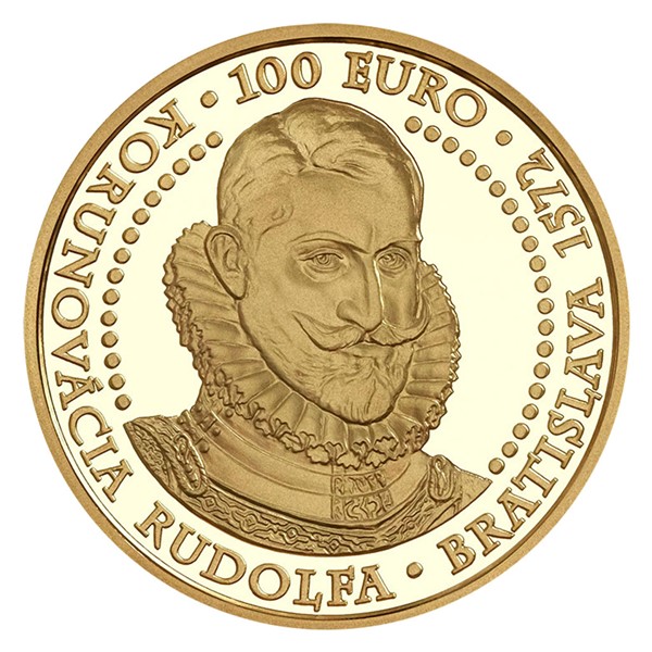 Zlatá mince s nominální hodnotou 100 euro byla vyražena u příležitosti 450. výročí bratislavské korunovace uherského krále Rudolfa.