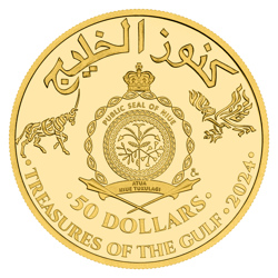 Řada investičních mincí s názvem „Treasures of the Gulf“ – čili „Poklady Zálivu“ – vznikla pro zákazníky České mincovny na Středním východě, ale osloví každého, kdo chce ozvláštnit své portfolio. Hmotnost zlaté mince s motivem arabského koně a s ročníkem 2024 činí jednu trojskou unci.