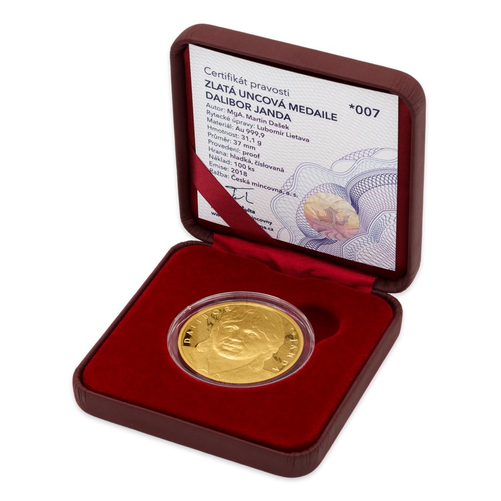 Medaile vyražená z jedné trojské unce zlata vychází v limitovaném nákladu čítajícím pouhých 100 kusů. Každý z nich je ručně číslovaný na hraně. Nepřehlédněte také elegantní sběratelskou etuji.