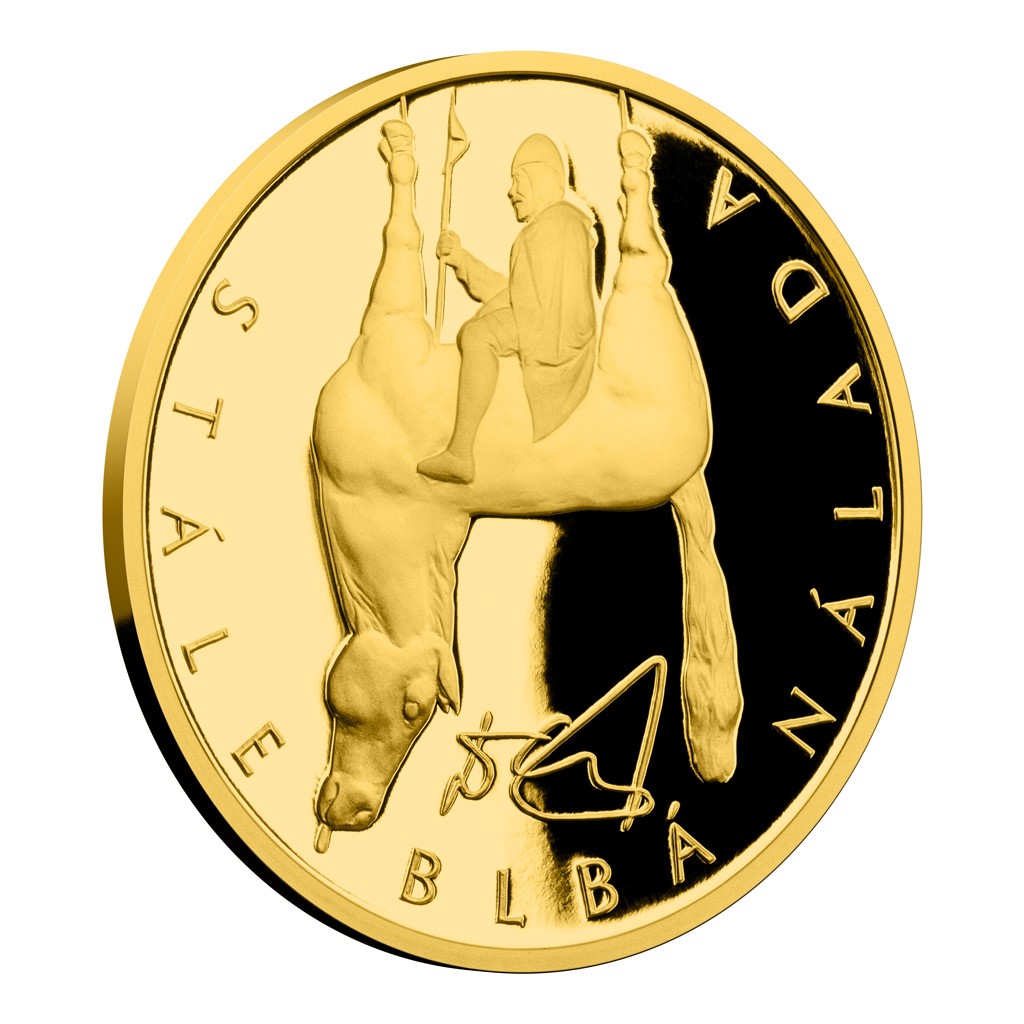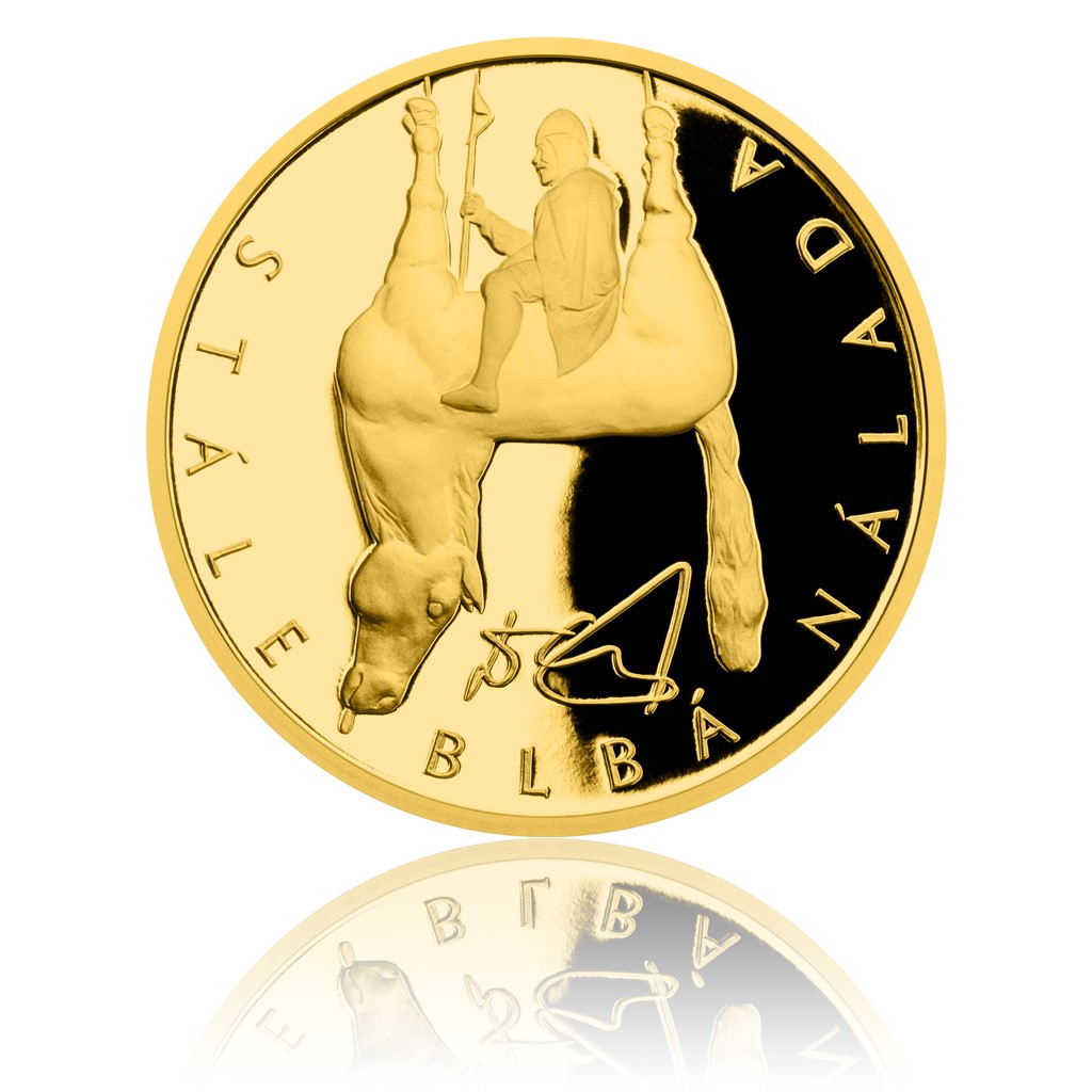 Série zlatých medailí České mincovny Umění pro Václava Havla představuje svou sedmou a závěrečnou emisi. Jejím autorem je David Černý. Výstřední sochař a buřič využil motiv své satirické sochy svatého Václava a medaili pojmenoval „Stále blbá nálada“ – vtipně tak odkázal na legendární výrok, kterým Václav Havel výstižně popsal stav naší společnosti.