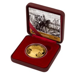 Každý z pouhých 100 kusů číslovaných zlatých medailí je doplněn speciálním certifikátem pravosti s průvodním slovem autora, kresbami a historickým textem.