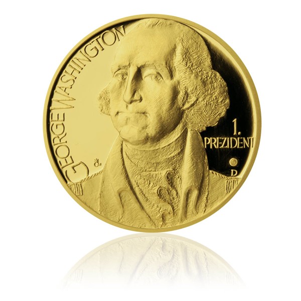 Hlavním motivem averzní strany medaile je portrét George Washingtona. Na levé straně od portrétu je umístěn nápis 1. prezident ve dvou řádcích, na protilehlé straně pak jméno prezidenta v opisu.