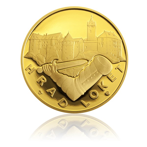 Románsko-gotický hrad Loket byl založen přibližně ve 3. čtvrtině 12. století za krále Vladislava II. na skalnatém vrchu nad řekou Ohří, kde se již předtím nacházelo staré slovanské hradiště Starý Loket. Hrad i přilehlé město dostaly svůj název podle mohutného meandru řeky obtékající město s hradem ve tvaru ohnutého lokte. Tento tvar zůstal zachován i v půdorysu hradu. Hrad Loket sloužil záhy po dokončení jako opora králi Václavovi I. při sporu s jeho odbojným synem, pozdějším králem Přemyslem Otakarem II. Od svého vzniku na něm často pobývali čeští přemyslovští panovníci a jejich rodiny, konala se zde významná diplomatická jednání. Averzní strana medaile zachycuje vysoký horizont hradu tak, aby boční pohled na něj půdorysně odpovídal tvaru lokte ruky, která je umístěna kompozičně pod něj. Jde o hlavní symbol hradu i města. Tento tvar ještě umocňuje netradiční umístění textu na medaili v pravém úhlu – ve tvaru lokte. Podobně netradiční je i řešení písma na reverzní straně medaile – tvoří nerovnoběžný opis, tentokrát ve tvaru erbu. Na reverzní straně medaile byl použit nejstarší výchozí symbol Přemyslovců, erb s motivem plamenné černé orlice. Orlice je symbolem panovnické moci. Orlice v plamenech pak značí výsadu panovníka, právo ohlašovat svůj příjezd na říšský sněm zapálením vesnic v okolí města sněmu. Na medaili je charakteristická černá barva orlice znázorněna jejím obrysovým plastickým pojednáním, aby její tělo bylo temné leskem úrovně podkladu. Limitovaný náklad 300 kusů.