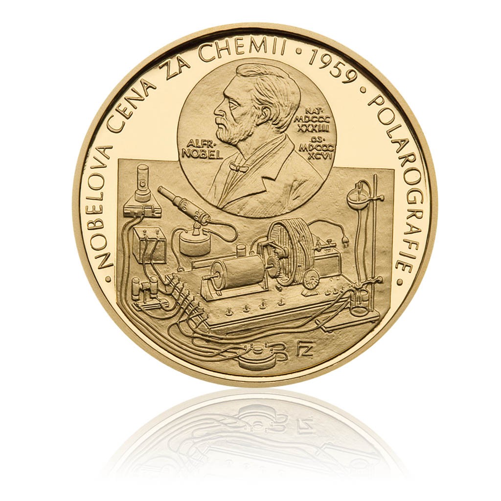 Akademik Jaroslav Heyrovský (1890 – 1967) byl český chemik oceněný v roce 1959 Nobelovou cenou za chemii. Narodil se v Praze. Již na akademickém gymnáziu se zajímal hlavně o chemii, fyziku a matematiku. Dva roky studoval chemii, fyziku a matematiku na Karlově univerzitě, poté přestoupil na londýnskou University College. Tehdy se potkal s tak význačnými osobnostmi, jako byl Sir William Ramsay. Studium zakončil v roce 1913; během spolupráce s profesorem Donnanem se začal velmi zajímat o elektrochemii. Další tituly získal Heyrovský v letech 1918 a 1923. Svou vědeckou kariéru zahájil na Karlově univerzitě v Praze, kde se brzy stal profesorem fyzikální chemie. Ve své vědecké činnosti se Heyrovského zabýval především polarografií, za kterou obdržel 10. prosince 1959 Nobelovu cenu za chemii. Po své smrti v roce 1967 byl pohřben na vyšehradském hřbitově v Praze. V roce 1982 po něm byla pojmenována planetka 3069 Heyrovský. Averzní strana medaile nese portrét nositele Nobelovy ceny z roku 1959 za polarografii a letopočet jeho narození a úmrtí. Reverzní stranu tvoří Heyrovského vynález polarografu a profil Alfréda Nobela – zakladatele Nobelovy ceny, kterou Heyrovský získal v oblasti chemie. Limitovaná emise 300 kusů, číslováno na hraně.