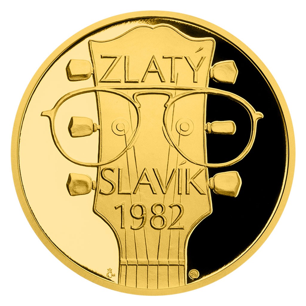 Pamětní medaile, která je dílem nadaného portrétisty MgA. Martina Daška, vtipně předkládá dvě hlavy – první patří zpěvákovi, druhá jeho kytaře a obě jsou ozdobeny ikonickými brýlemi. Texty pak uvádějí MIRO ŽBIRKA – ZLATÝ SLAVÍK 1982.