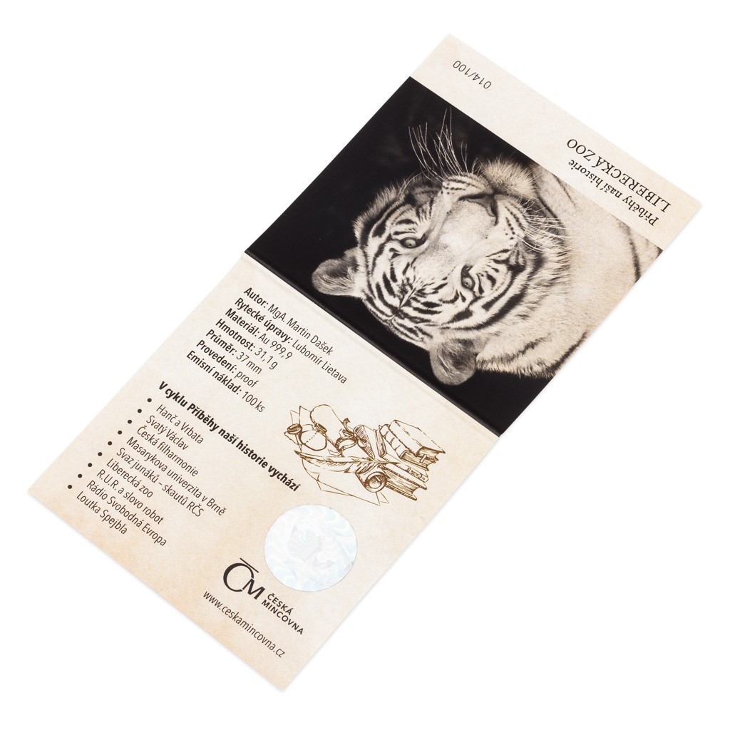 Šestá pamětní medaile České mincovny z cyklu Příběhy naší historie vypráví nejen o obdivu a lásce k přírodě, ale také o hledání vlastních kořenů. V jedné trojské unci ryzího zlata se zrcadlí příběh liberecké zoo.