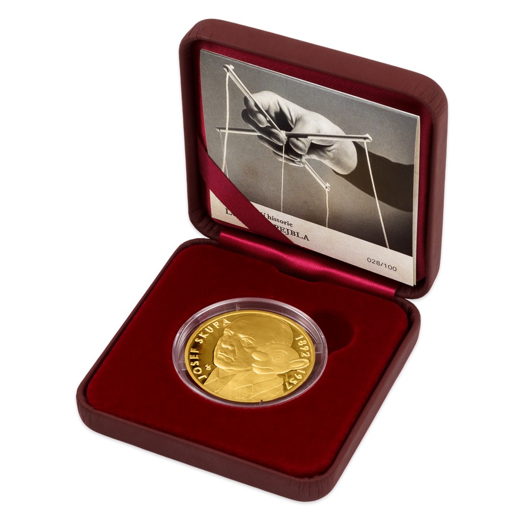 Kompletní pětici loutek najdete na reverzní straně medaile z dílny MgA. Martina Daška. Averzní stranu pak medailér věnoval osobnosti Josefa Skupy – portrét loutkoherce doplnil jeho jménem, životními letopočty a původní loutkou pana Spejbla.