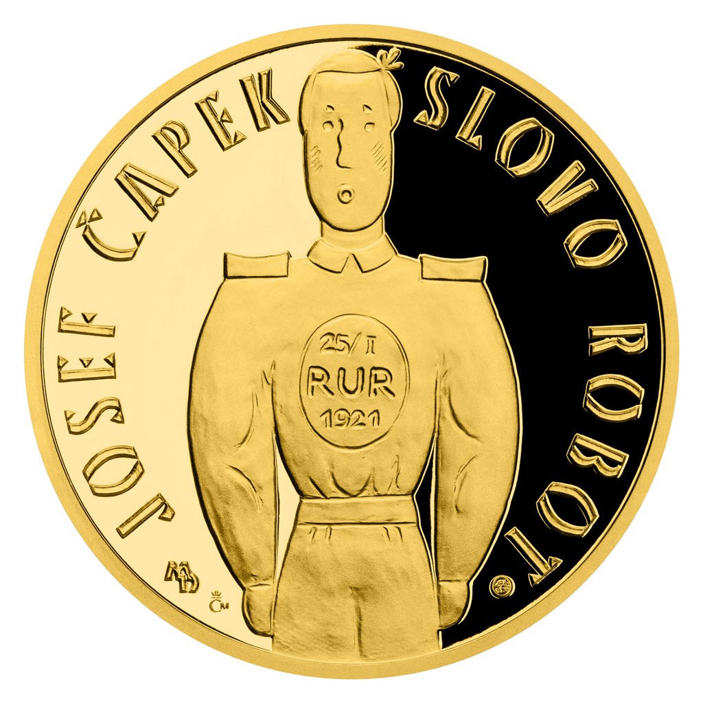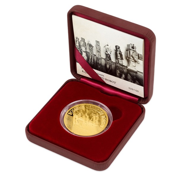 Osmá medaile z cyklu České mincovny Příběhy naší historie vychází v roce, kdy si připomínáme 100. výročí uvedení divadelní hry R.U.R. Celá jedna unce zlata je věnována nejen futuristickému dramatu, ale také nejznámějšímu českému slovu na světě.