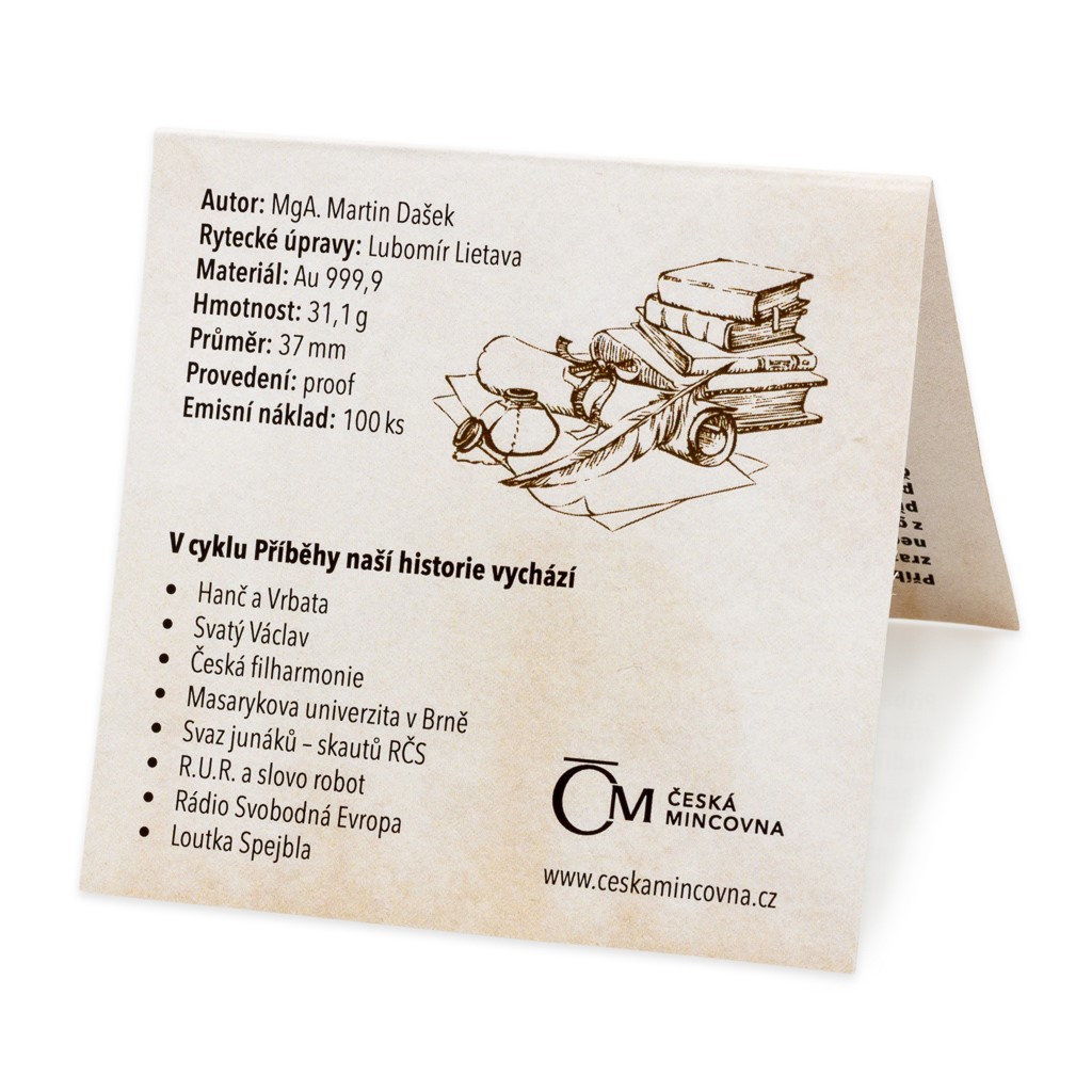 Zlatých medailí o hmotnosti trojské unce vznikne pouhých 100 kusů – každý je ručně číslovaný na hraně a doplněný speciálním certifikátem pravosti.