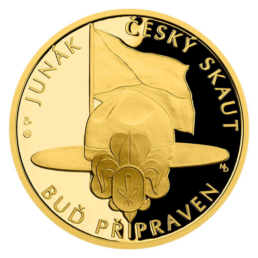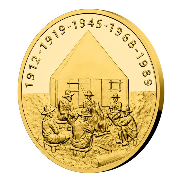 Pátá zlatá medaile České mincovny o hmotnosti jedné trojské unce z cyklu „Příběhy naší historie“ je věnována junákům – českým skautům.