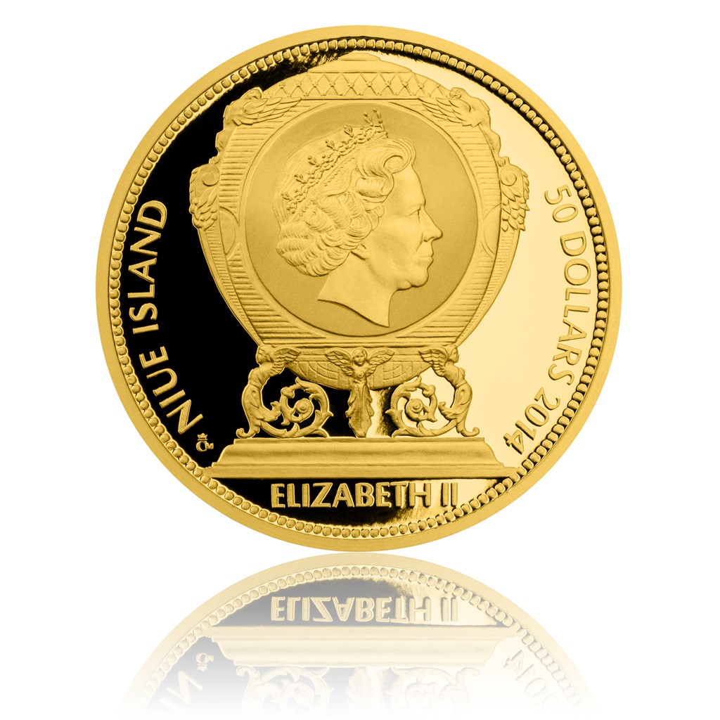 Není tedy divu, že je tento symbol jedním z nosných prvků, který se objevuje na averzu mince z ryzího zlata, jíž Česká mincovna oslavuje odkaz Gustava Fabergého. Jeho návrh připravil Asamat Baltaev na motivy klenotu v podobě vejce. Um tohoto mladého nadějného medailéra je na miniatuře patrný z mistrného a věrného zpracování všech detailů vejce, jímž vzdává hold vyhlášené řemeslné zručnosti tehdejších zlatníků. Portrét britské královny Alžběty II. je doplněn názvem emitenta Niue Island a nominálem 50 NZD.