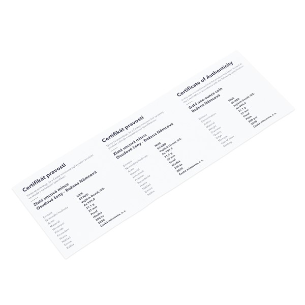 Od narození Boženy Němcové uplynulo v roce 2020 rovných 200 let a emisní náklad čítá 200 kusů zlatých mincí.
