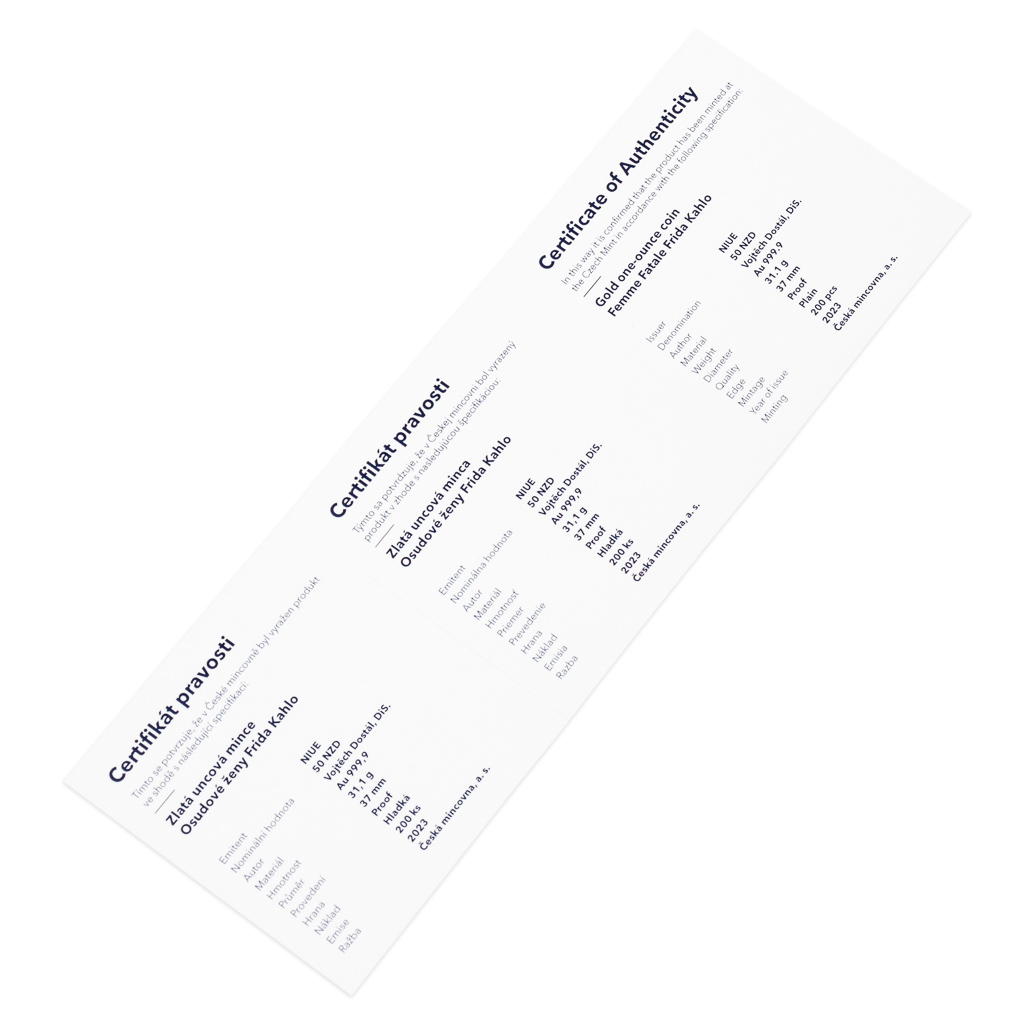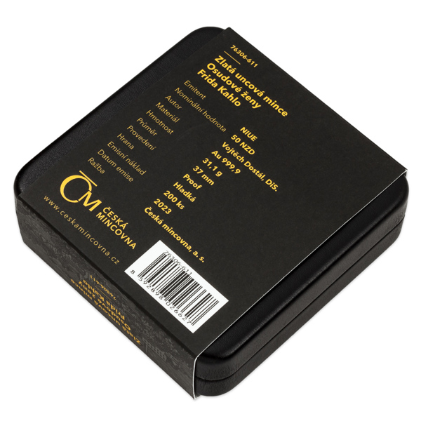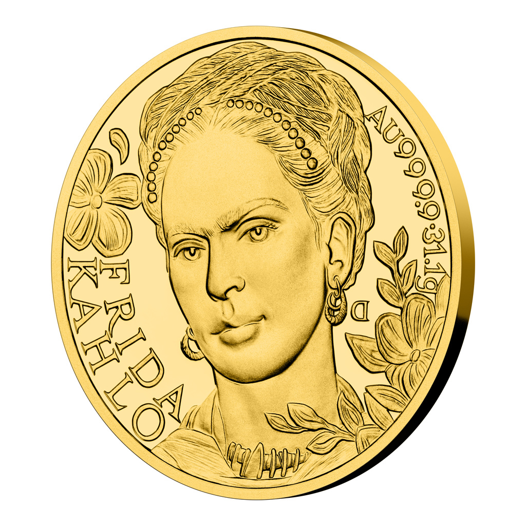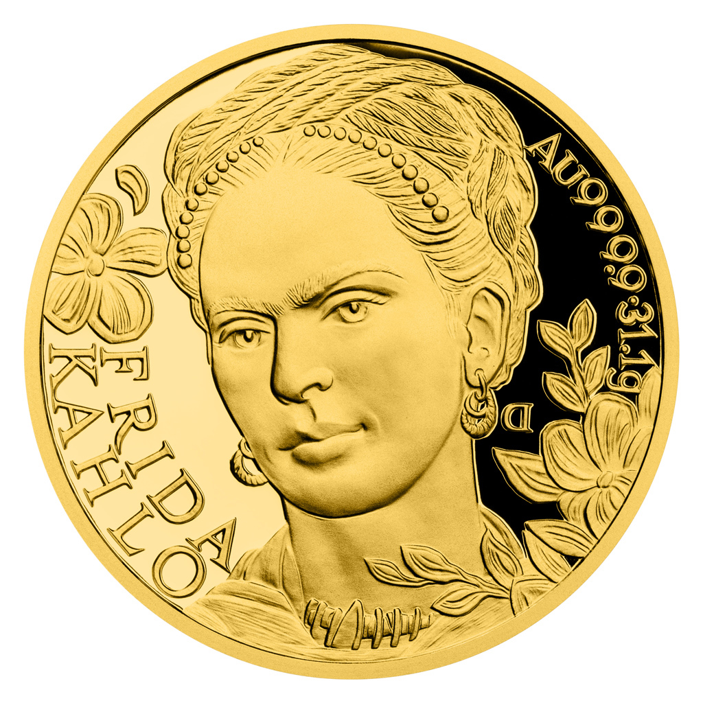 Osmou osudovou ženou, kterou připomíná zlatá mince z volného cyklu České mincovny, se stala mexická malířka Frida Kahlo.