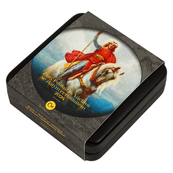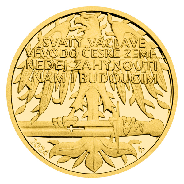 Averzní strana zlatého dukátu, který je dílem medailéra Mgr. Petra Horáka, předkládá svatého Václava v podobě rytíře – s přilbou a v kroužkové zbroji. Texty na averzu uvádějí SV. VÁCLAV – 1-DUKÁT. Reverzní stranu ražby pak vyplňuje plamenná orlice, která v drápech svírá svatováclavský meč. Kompozici reverzu dotváří letopočet 2024 a text proslulého chorálu: SVATÝ VÁCLAVE, VÉVODO ČESKÉ ZEMĚ… NEDEJ ZAHYNOUTI NÁM I BUDOUCÍM