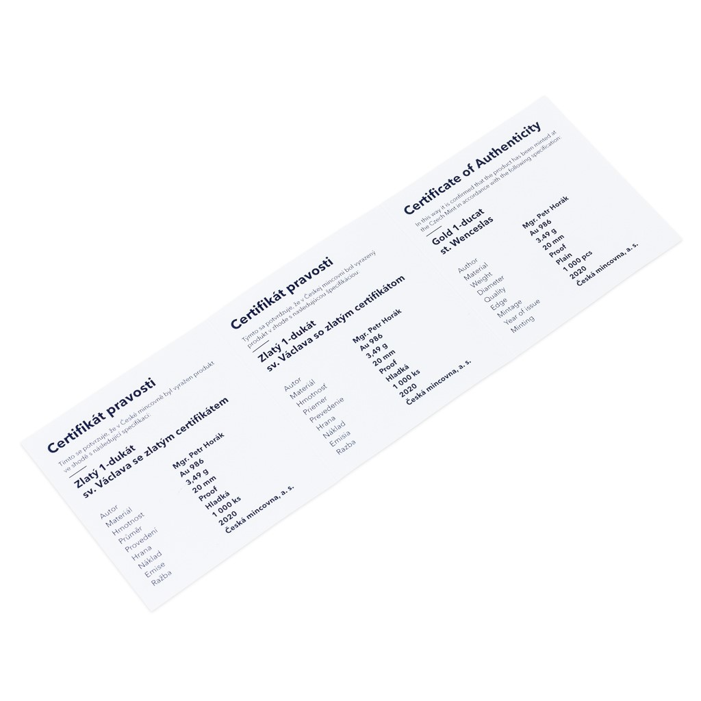 Zlatý 1-dukát sv. Václava se zlatým certifikátem