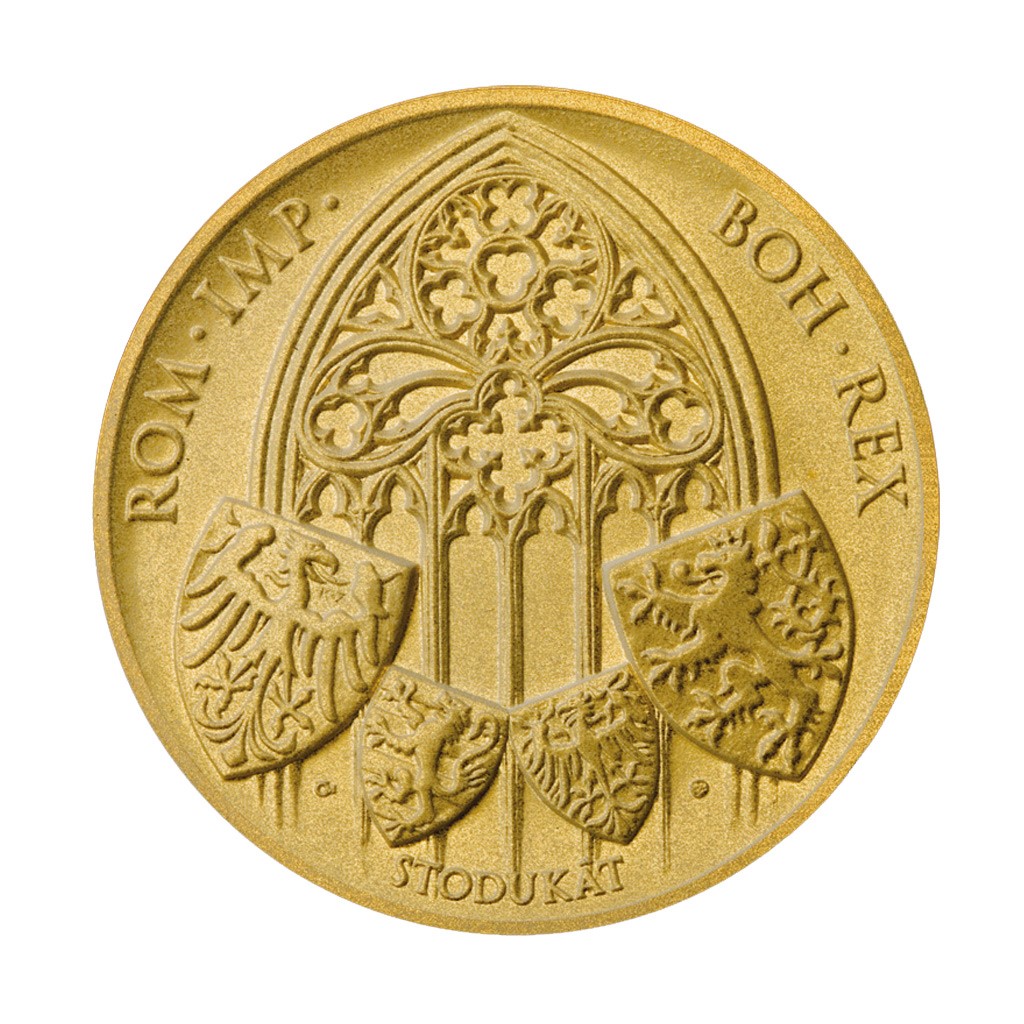 Zlatý 100dukát Karla IV stand