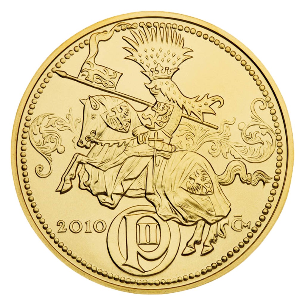 Přemyslovský král železný a zlatý na zlaté medaili.