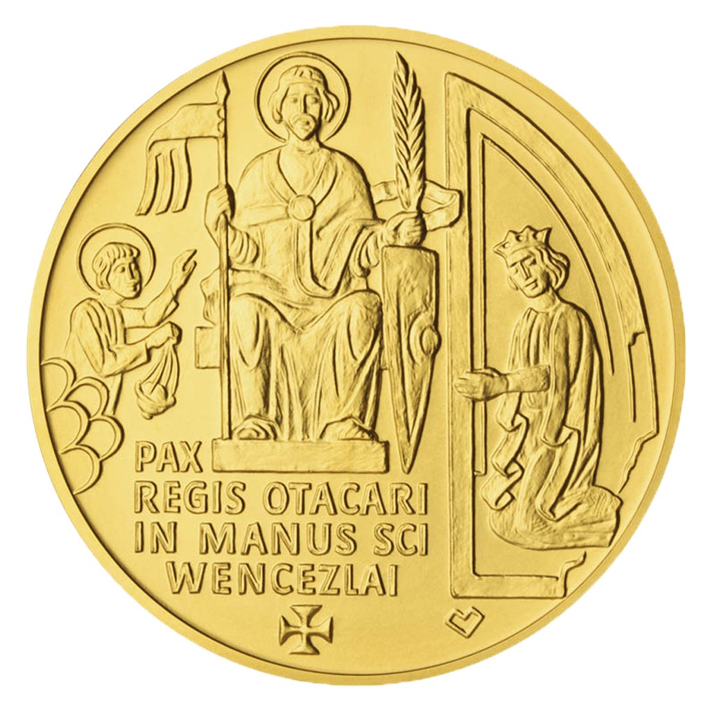 Na averzní straně je vyobrazena polopostava Přemysla Otakara I., inspirovaná opukovým reliéfem z baziliky sv. Jiří na Pražském hradě a královou majestátní pečetí.