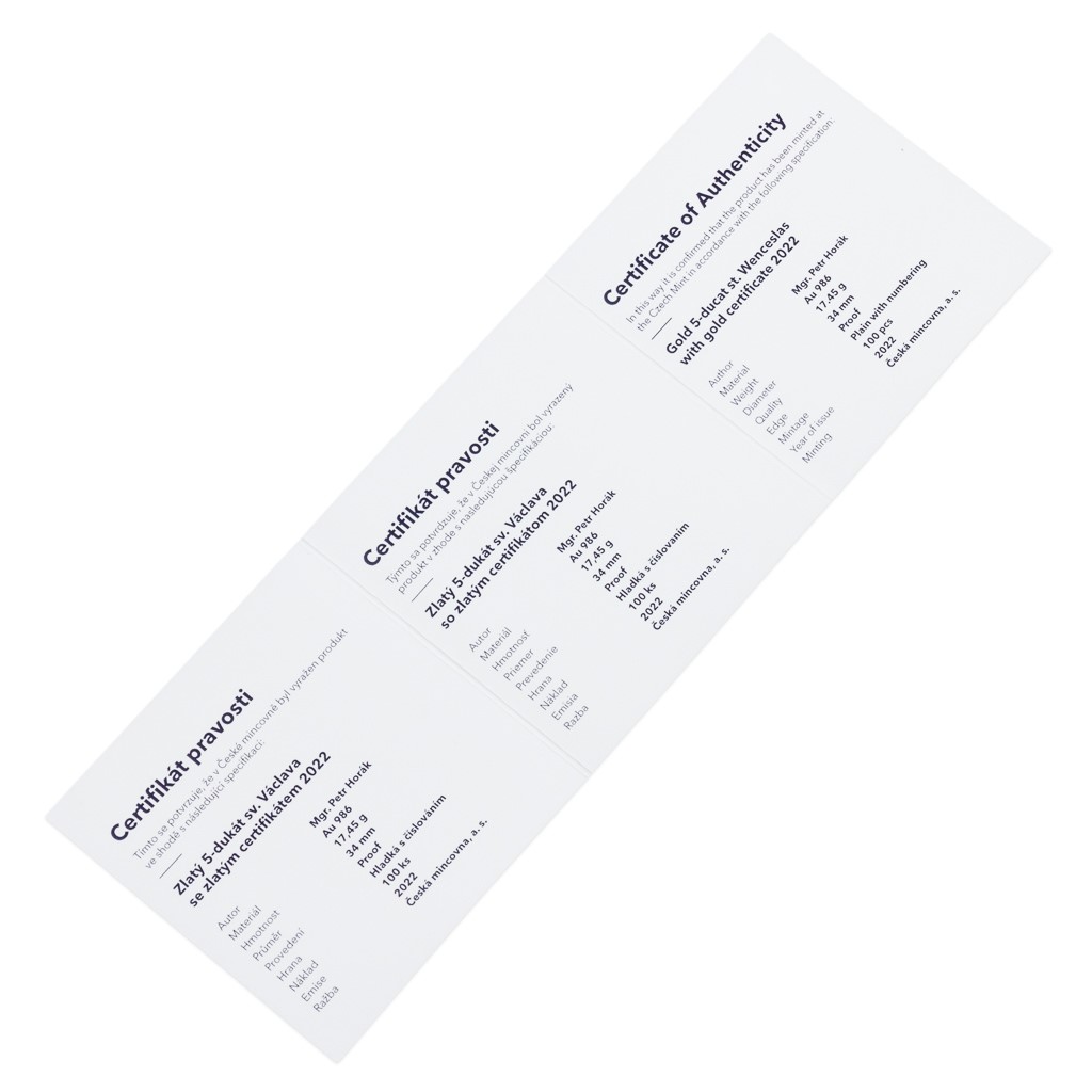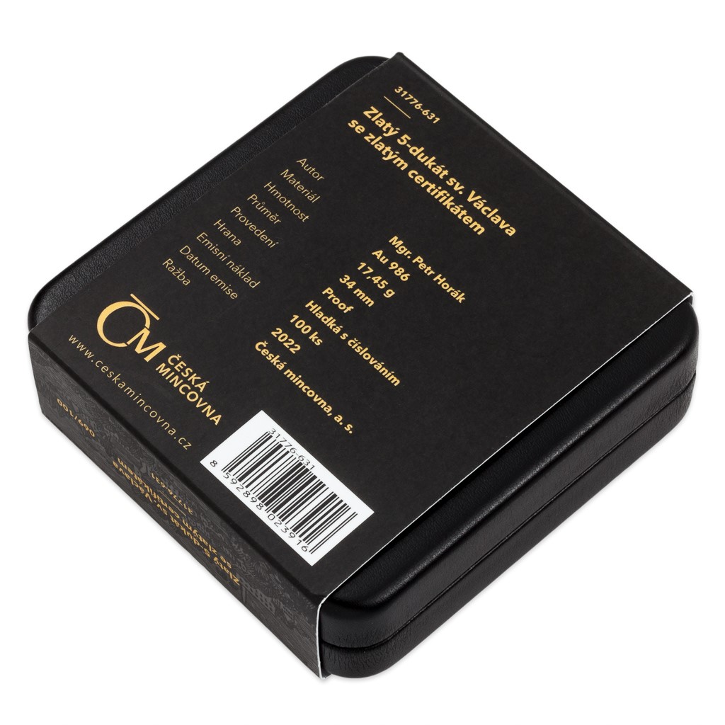 Zlatý 5-dukát sv. Václava se zlatým certifikátem 2022 proof