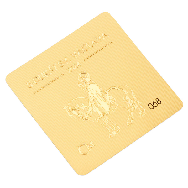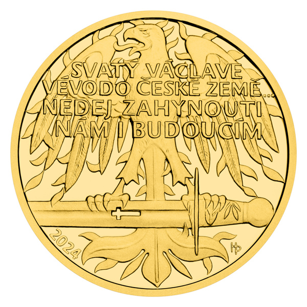 Averzní strana zlatého pětidukátu, který je dílem medailéra Mgr. Petra Horáka, předkládá svatého Václava v podobě mučedníka. Výjev z jeho skonu inspirovala perokresba z Velislavovy bible. Texty na averzu uvádějí ZAVRAŽDĚNÍ SV. VÁCLAVA – 5-DUKÁT. Reverzní stranu ražby pak vyplňuje plamenná orlice, která v drápech svírá svatováclavský meč. Kompozici reverzu dotváří letopočet 2024 a text proslulého chorálu: SVATÝ VÁCLAVE, VÉVODO ČESKÉ ZEMĚ… NEDEJ ZAHYNOUTI NÁM I BUDOUCÍM